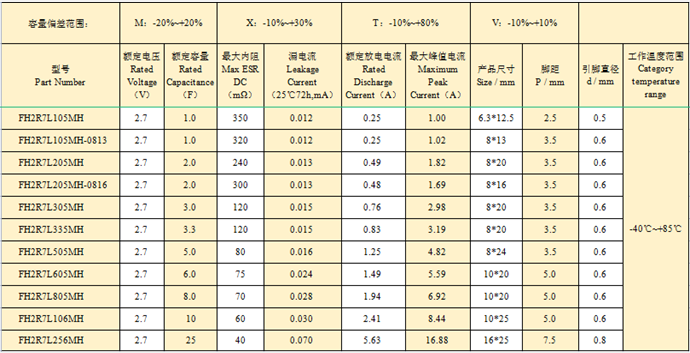 产品报价:风华超级电容低内阻FH2R7L505M