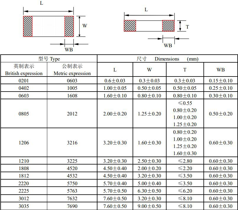 风华贴片电容结构尺寸图如下