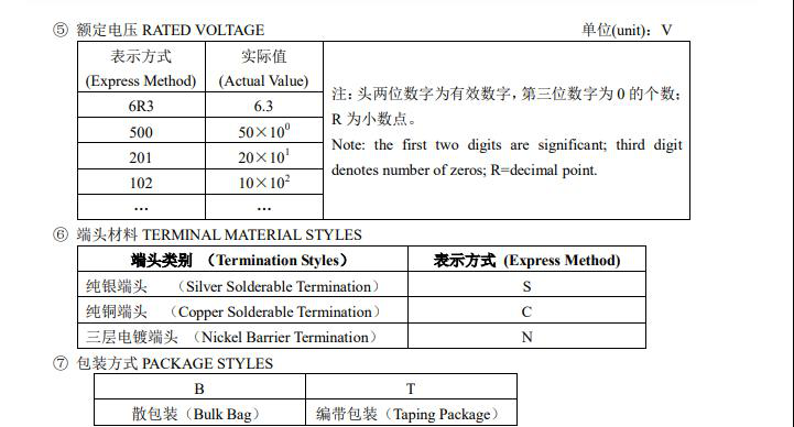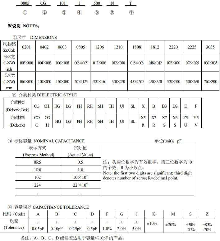 风华贴片电容型号规格表示图如下