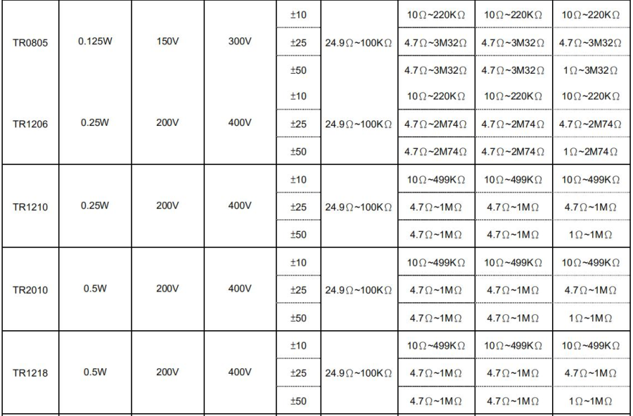 另外目前能够做到贴片高压电阻封装尺寸有其中如0603、0805、1206、1210、1812、2010、封装。小编会以天二规格书图大致列出对应相关参数等,而深圳杏盛科技主要销售高压电阻全系列封装尺寸,品牌可选、天二、大毅、风华、厚声、国巨、光颉、旺诠、xs-等品牌,联系电话:0755-23775203。