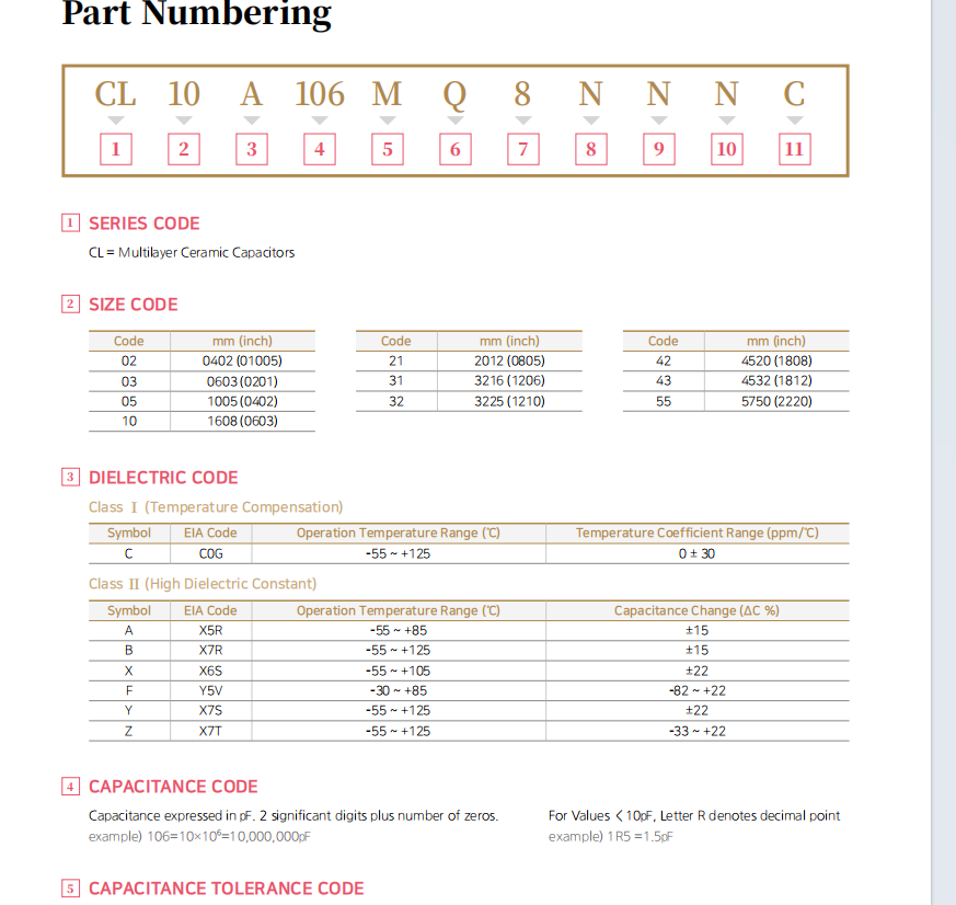 NNNC:代表原厂内部编码及包装方式,其中c是指纸带的包装的--具体三星贴片电容有几种尺寸、材质、容值单位、精度、电压都可以在规格书中一览无余!
