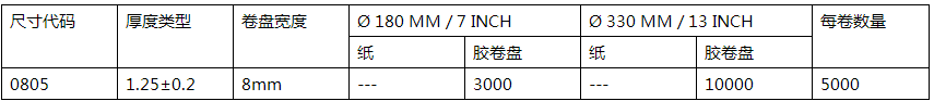 国巨0805尺寸大小表