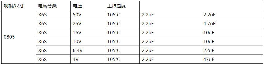 标签:国巨 CC 0805 X6S通用普通贴片陶瓷电容电容值参数