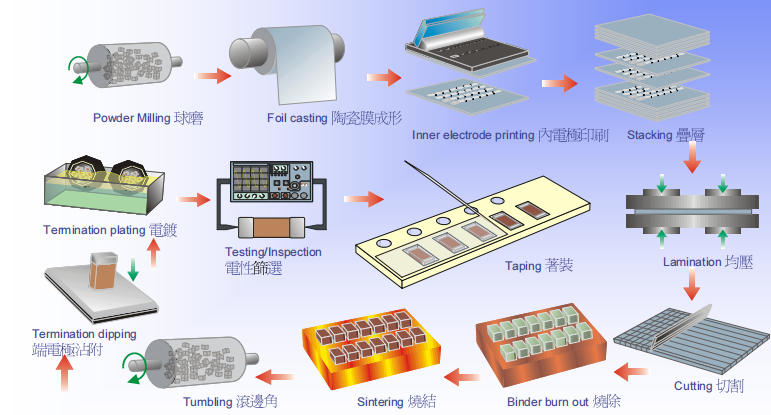 英文 Multi-Layer Ceramic Capacitors,简称 MLCC