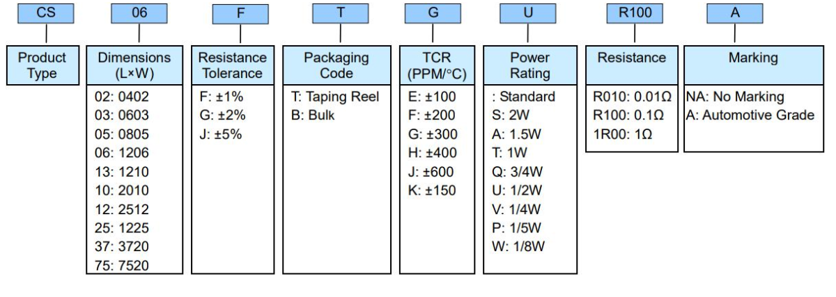 光颉(viking)电阻料号命名识别图如下